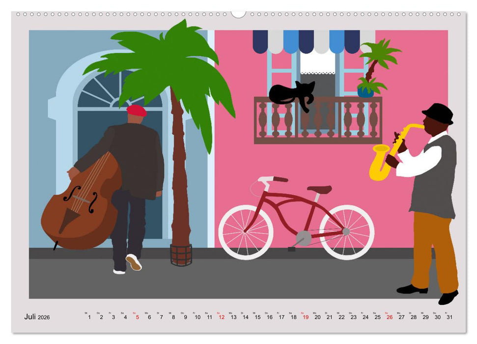 Plakative Illustrationen zeigen Kuba auf eine ganz besondere Weise. (Monatskalender, 14 Seiten)
