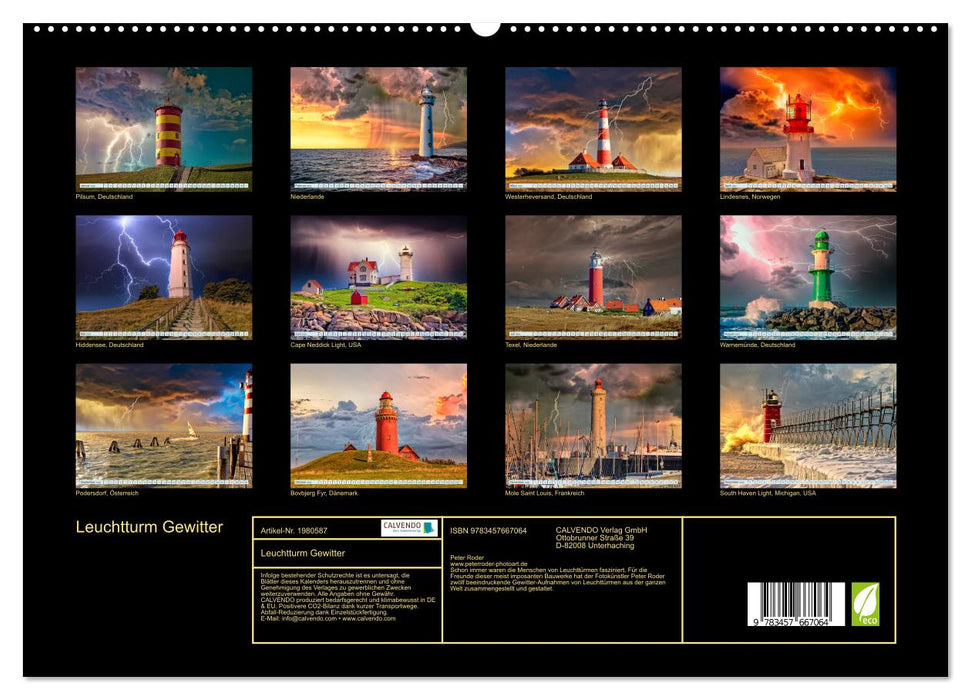 Schon immer waren die Menschen von Leuchttürmen fasziniert. Für die Freunde dieser meist imposanten Bauwerke hat der Fotokünstler Peter Roder zwölf beeindruckende Gewitter-Aufnahmen von Leuchttürmen aus der ganzen Welt zusammengestellt und gestaltet.