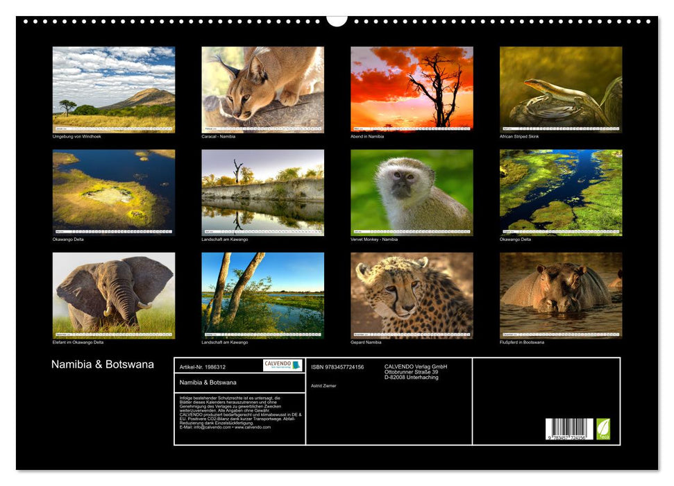 Namibia & Botswana / Tiere & Landschaften (Monatskalender, 14 Seiten)