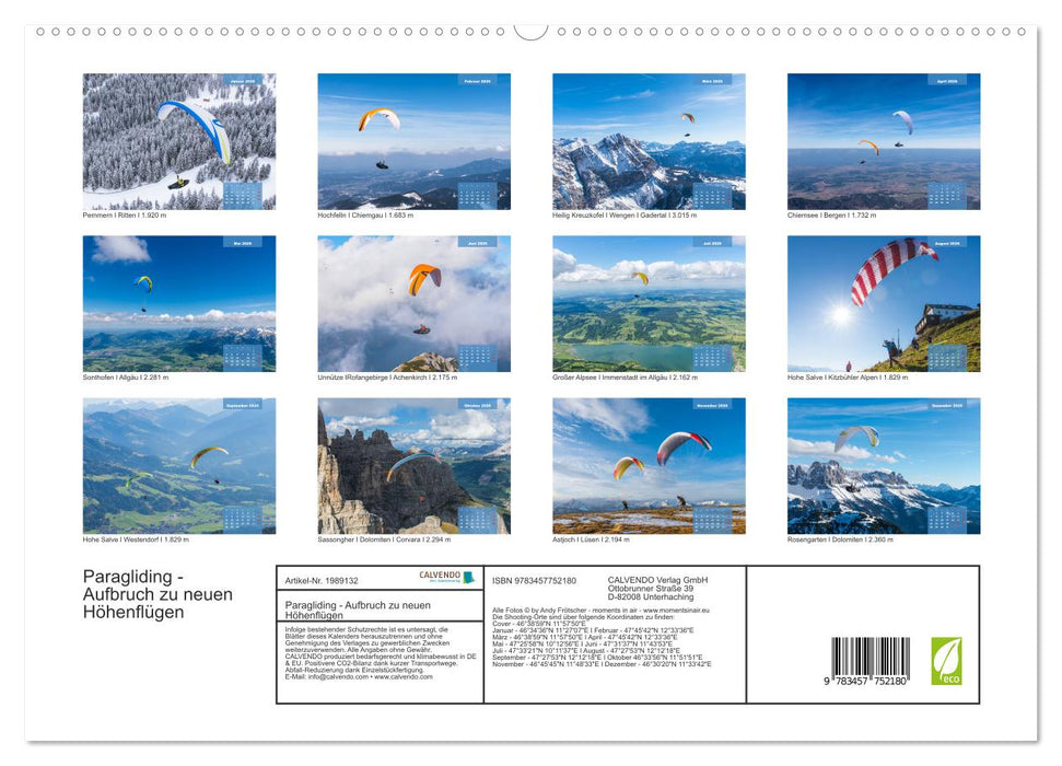 Faszinierende Ausblicke über die Bergwelt wie ihn Gleitschirmpiloten kennen. (Monatskalender, 14 Seiten)
