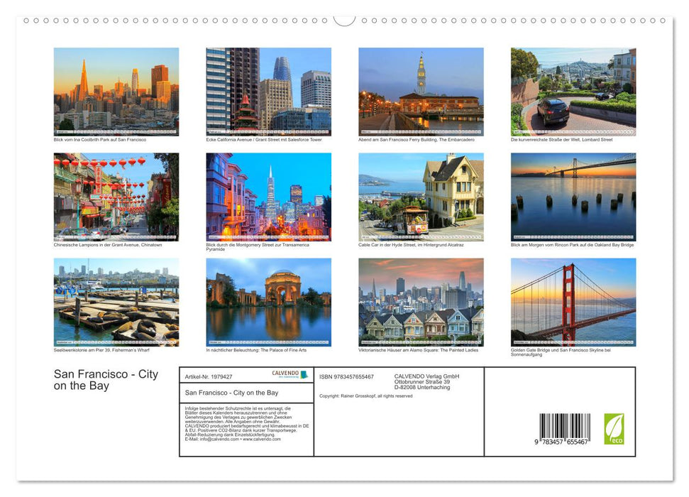 Entdecken Sie mit diesem Kalender die weltoffene amerikanische Metropole San Francisco, die im Herzen der Bay Area im sonnigen Kalifornien liegt. Faszinierende Aufnahmen bei Tag und Nacht lassen Sie eintauchen in diese beliebte Stadt, die spätestens seit den Hippies der 70er Jahre den Ruf genießt, lebensfroh, unkonventionell und aufregend zu sein.