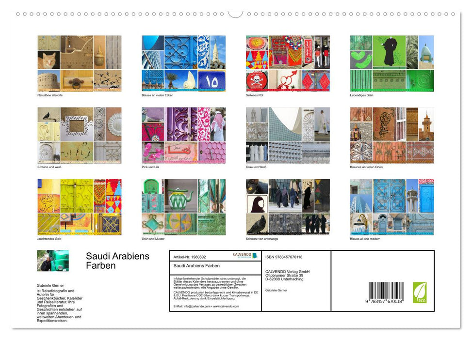 Der Kalender ist ein Kunstwerk an Ihrer Wand und ein Fenster in die faszinierende Welt Saudi-Arabiens. Die Schönheit und Einzigartigkeit dieses Landes wird sicherlich auch Sie begeistern.