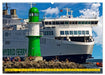 Juli: Fährschiff Nils Holgersson passiert eingehend den Warnemünder Seekanal nebst Westmole