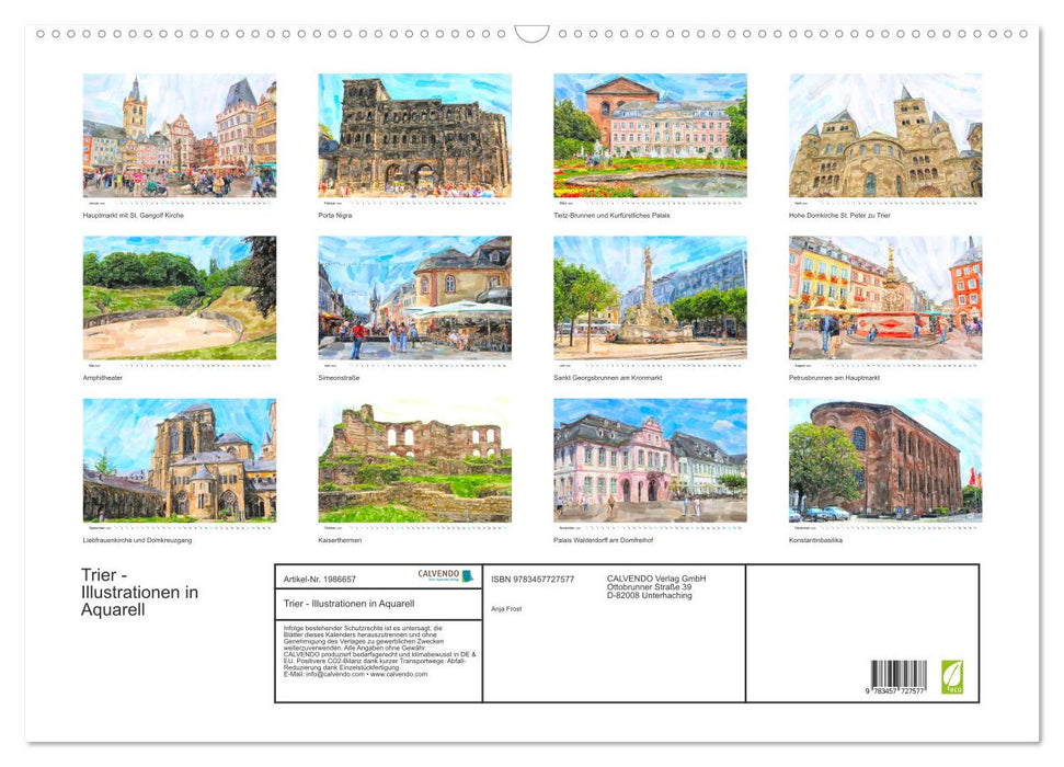 Trier - Illustrationen in Aquarell (CALVENDO Wandkalender 2026)