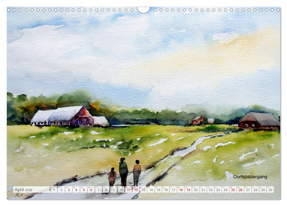 Großartige Aquarelle in herrlichen Farben, eingefangen in Deutschlands Norden. Der Maler nimmt uns mit auf die Reise in faszinierende weite Landschaften. Die Darstellungen erinnern an Geschichten von Theodor Storm.