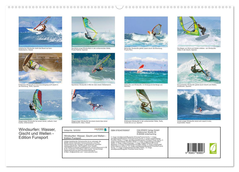 Mit einem Surfbrett aufs Wasser ist schon toll, aber ein Segel auf so einem Brett macht die Sache erst richtig flott. Hier fliegen, gleiten, segeln, surfen und springen die Windsurfer auf zwölf atemraubenden Fotografien, dass es eine wahre Freude ist. Man spürt sofort das Salzwasser auf der eigenen Haut, erinnert sich an den letzten Trip. Und plant auch bald den nächsten: nach Spanien, Marokko oder gleich nach Hawaii. Tauchen Sie ein in die Welt der Windsurfer!