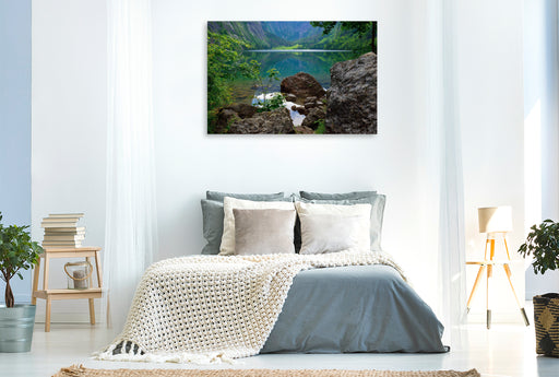 Premium Textil-Leinwand Premium Textil-Leinwand 120 cm x 80 cm quer Obersee mit Fischunkelalm in der Ferne