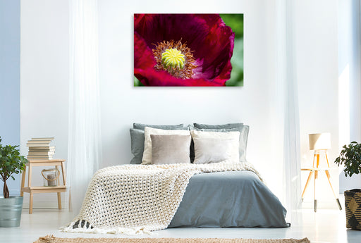 Premium Textil-Leinwand Premium Textil-Leinwand 120 cm x 80 cm quer Dunkelroter Mohn im Garten