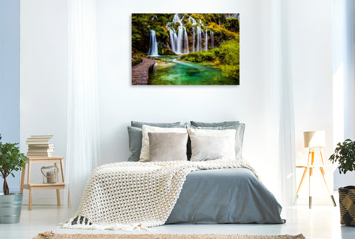 Premium Textil-Leinwand Premium Textil-Leinwand 120 cm x 80 cm quer Ein Motiv aus dem Kalender Herbstimpressionen Plitvicer Seen