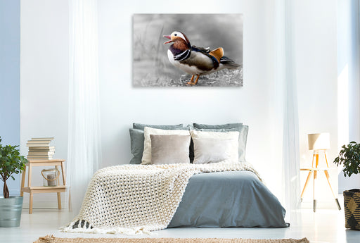 Premium Textil-Leinwand Premium Textil-Leinwand 120 cm x 80 cm quer Ruf der Mandarinente