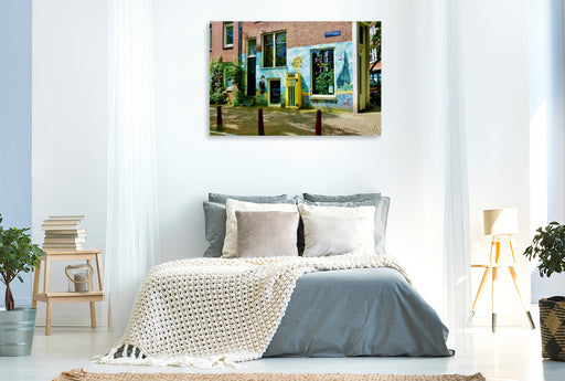 Premium Textil-Leinwand Premium Textil-Leinwand 120 cm x 80 cm quer Amsterdam - Van Gogh Café / Prinsengracht