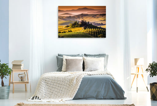 Premium Textil-Leinwand Premium Textil-Leinwand 120 cm x 80 cm quer Weinanbaugebiet und Landschaft in der Toskana