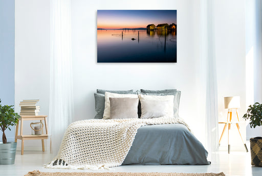 Premium Textil-Leinwand Premium Textil-Leinwand 120 cm x 80 cm quer Pfahlbauten bei Unteruhldingen