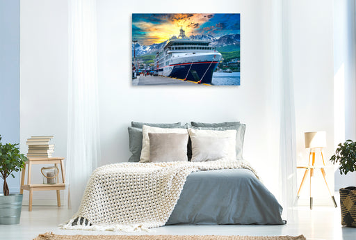Premium Textil-Leinwand Premium Textil-Leinwand 120 cm x 80 cm quer Die HANSEATIC nature am Kai von Ushuaia am südlichen Ende von Südamerika.