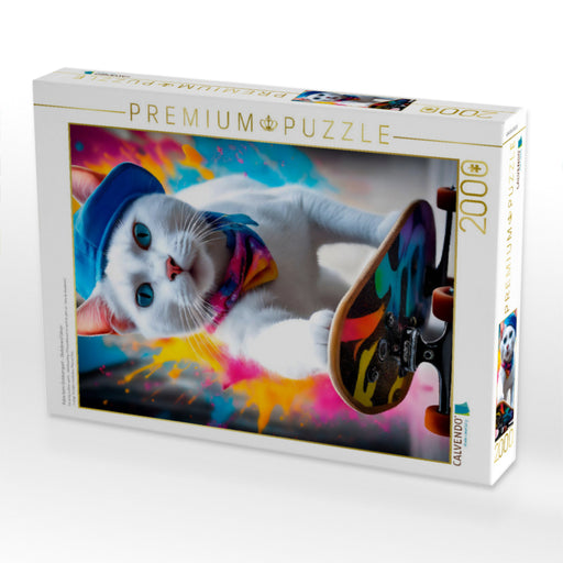Katze beim Outdoorsport - Skateboard fahren - CALVENDO Foto-Puzzle'