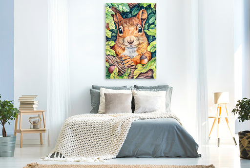 Premium Textil-Leinwand Eichhörnchen im Eichenbaum