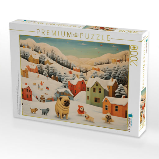 Hunde spielen in einer Winterlandschaft lustig im Schnee - CALVENDO Foto-Puzzle'