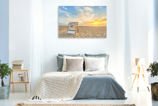 Ein einsamer Strandkorb am Ostseestrand auf Usedom kurz nach Sonnenaufgang im Sommer. Das Motiv ist aus dem Kalender Wunderschöne Ostsee - Traumh...