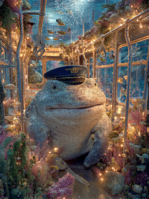 Ein freundlicher Wal steuert einen leuchtenden Unterwasserbus durch ein magisches Korallenriff. Das fantasievolle Motiv bringt Kinder zum Träumen ...