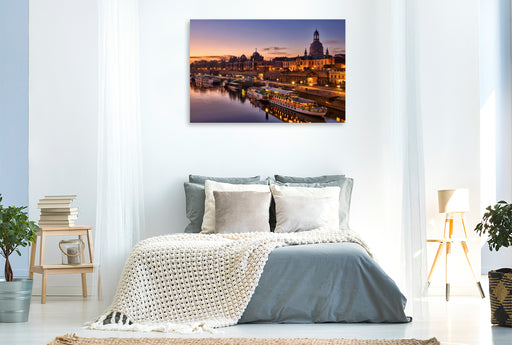 Premium Textil-Leinwand Premium Textil-Leinwand 120 cm x 80 cm quer Auf der Augustusbrücke mit Blick zur Altstadt